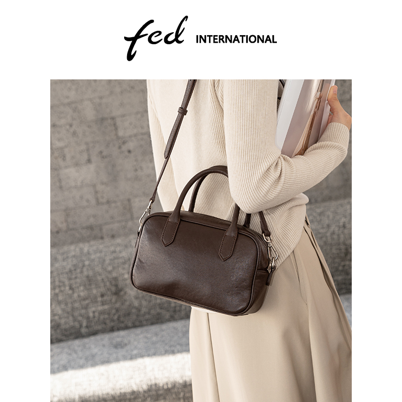 fed植鞣皮头层牛皮女包斜垮单肩波士顿包长期主义雅丹风BFA9121