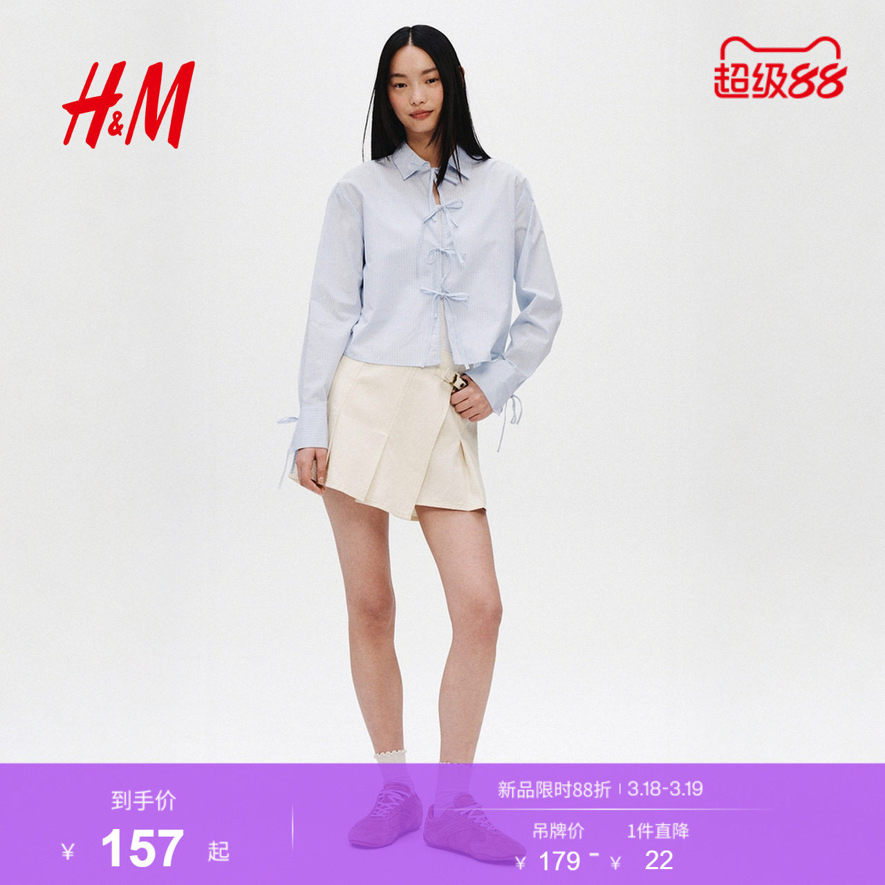 HM女装裤子2026春季新款围裹式浅春系户外出游牛仔短裙裤1324104