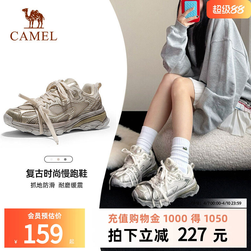 骆驼漫游慢跑鞋心动版脏脏粉新款女鞋网面透气运动鞋女复古老爹鞋