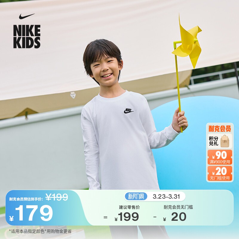 耐克大童纯棉长袖T恤冬季男女童休闲经典刺绣针织棉NIKE FZ4946