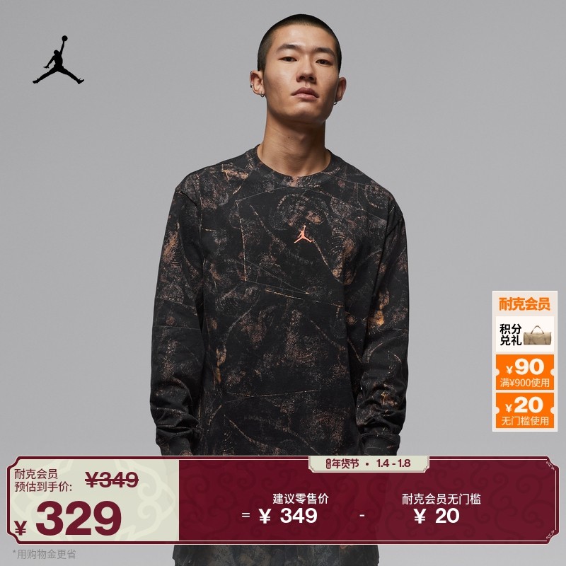 耐克乔丹男子纯棉长袖T恤春季新款印花徒步舒适JORDAN IF3047