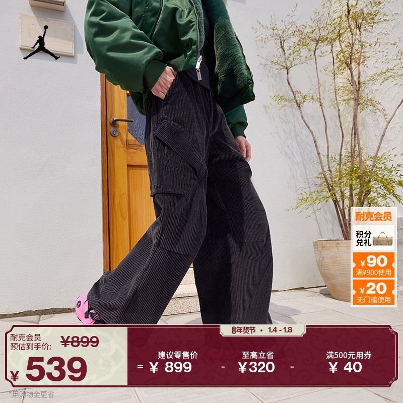 耐克乔丹女子宽松灯芯绒长裤冬季新款机能风运动裤JORDAN HV0347
