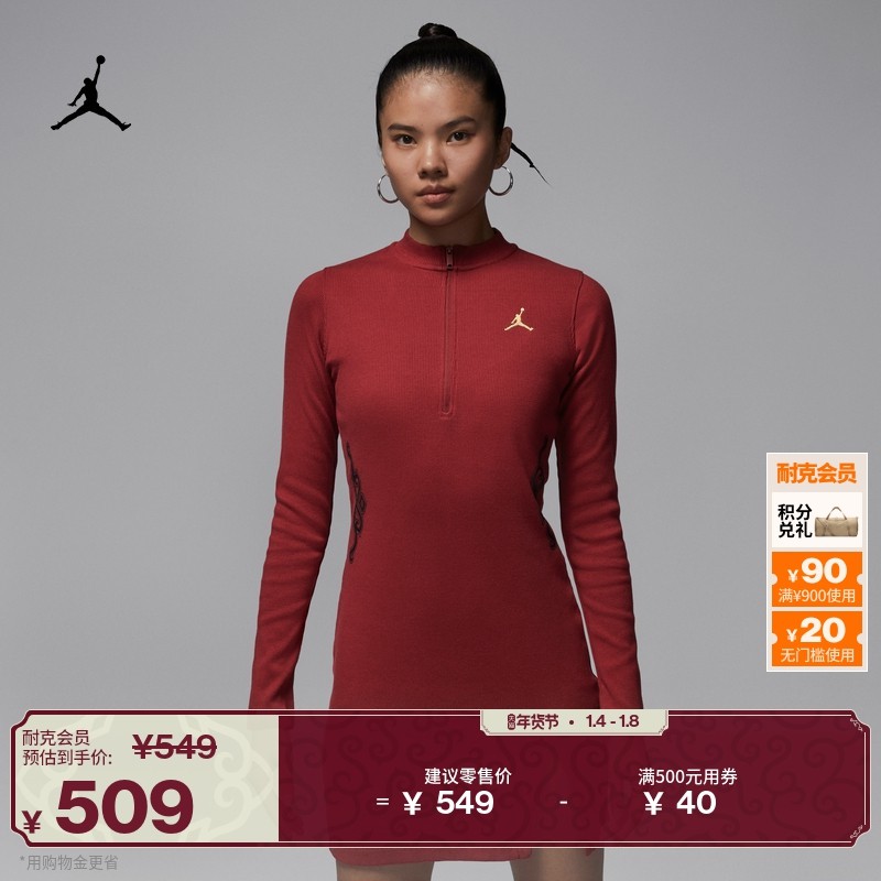 耐克乔丹新年系列马年限定女红色长袖连衣裙春新款JORDAN IQ3963