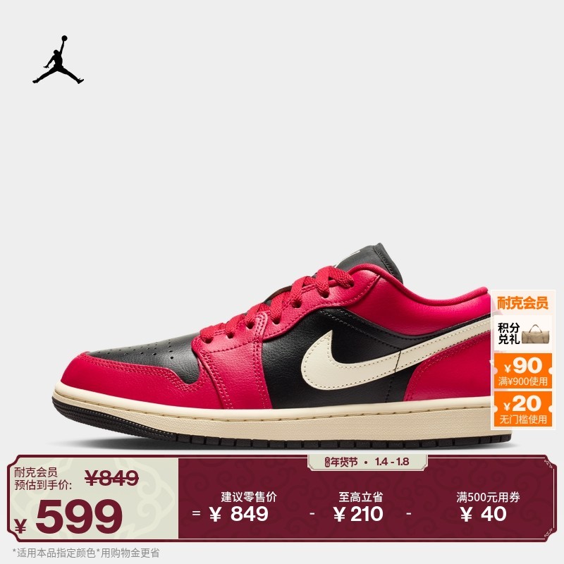 耐克乔丹女子轻便AJ1板鞋春季平底刺绣低帮运动鞋JORDAN DC0774