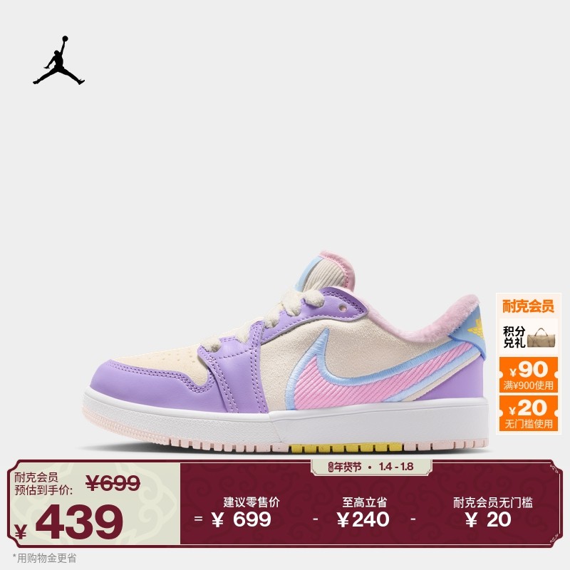 耐克乔丹大童低帮运动鞋春男女童部分皮面JORDAN 1 LOW RM HQ2024