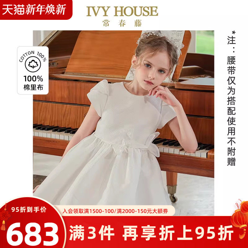 IVY HOUSE常春藤儿童装女童秋季新款 轻奢礼服裙立体蝶恋花连衣裙