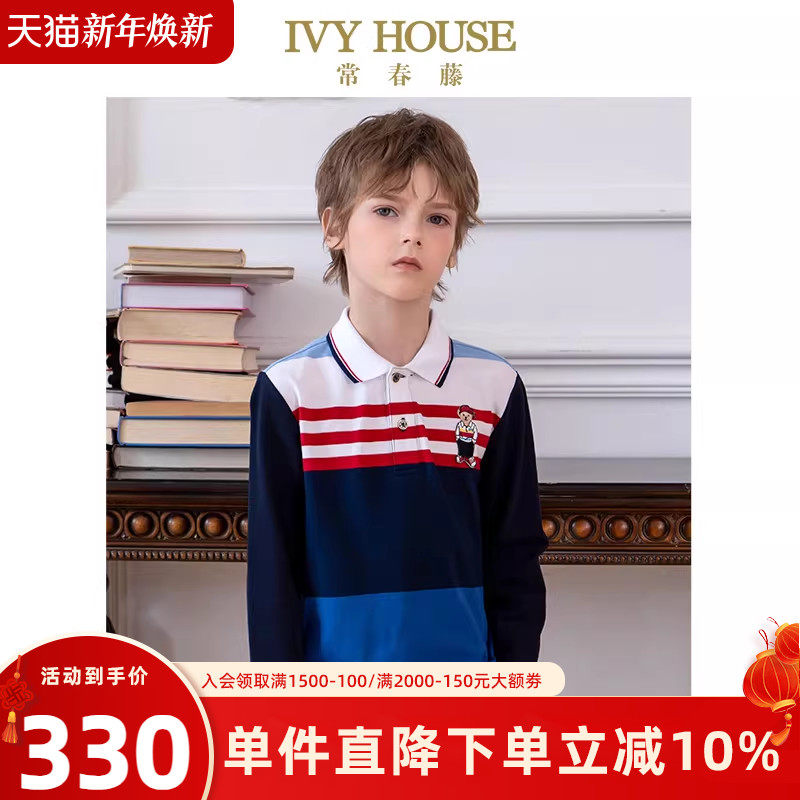 IVY HOUSE常春藤儿童装男童2025秋季新款 长袖POLO衫T恤条纹学院