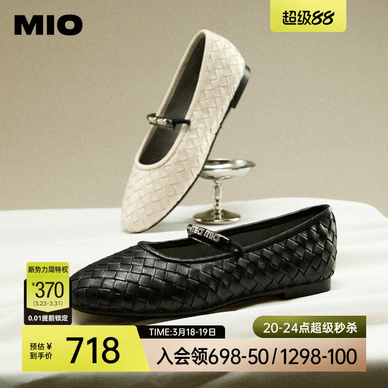 MIO米奥春季女鞋款优雅简约玛丽珍鞋羊皮编织松紧带舒适平跟鞋