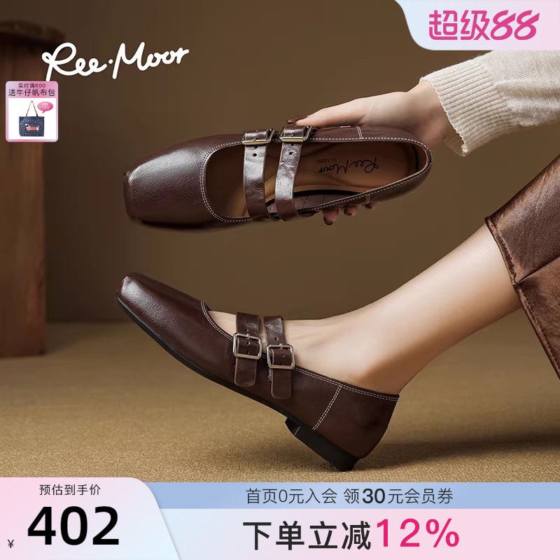 REEMOOR睿慕2026春季新款法式双扣带玛丽珍粗跟浅口单鞋真皮女