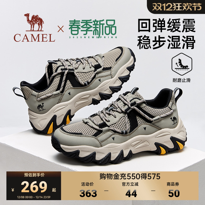骆驼男鞋2025春季新款户外登山鞋男透气舒适老爹鞋男休闲运动鞋