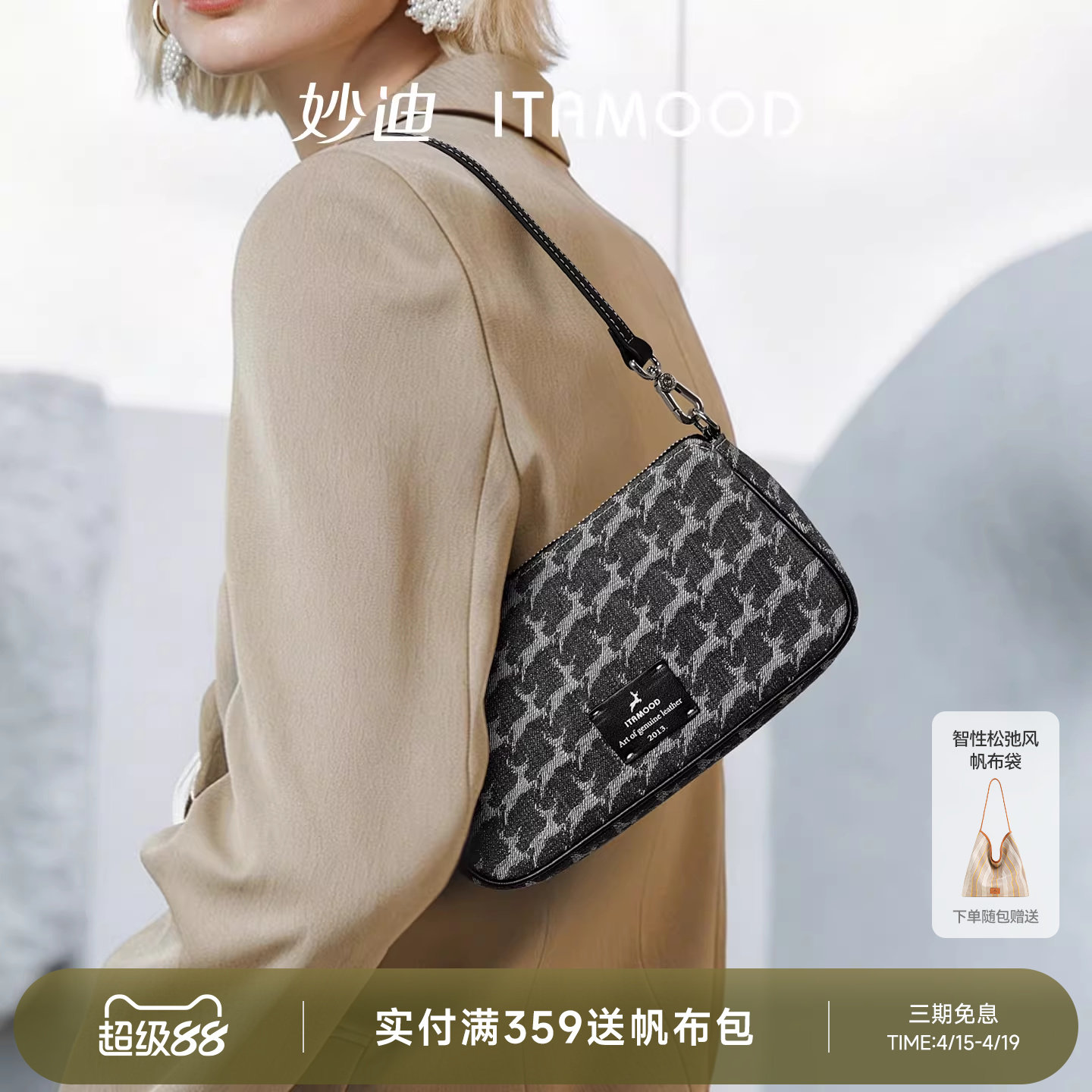 妙迪法棍腋下包2026新款复古丹宁牛仔手拎包时尚通勤斜挎小包包女