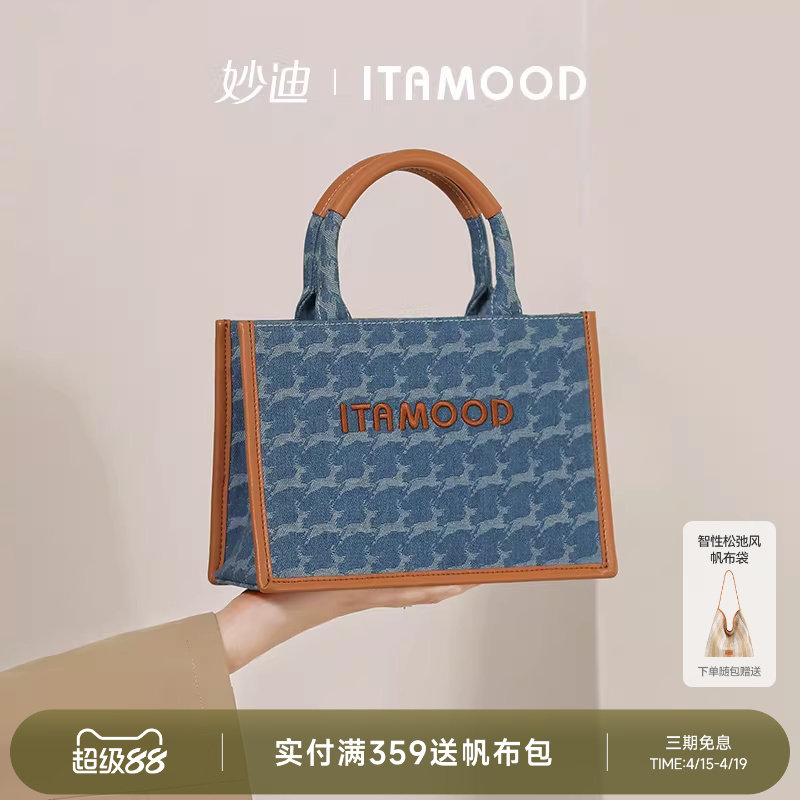 妙迪提花牛仔手提方包新款原创时尚托特上班通勤手提包斜挎包女