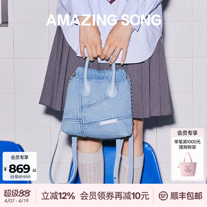 Amazing Song乙颂流浪袋双肩牛仔小号春夏新款手提双肩包包女
