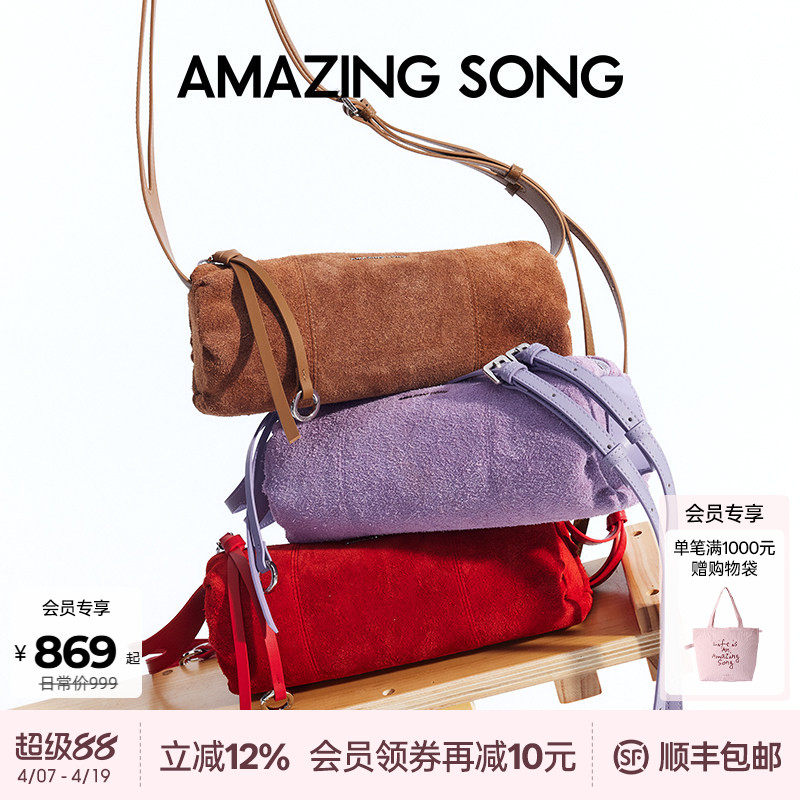 Amazing Song乙颂甜甜圈笔筒包头层牛皮麂皮高级新款斜挎腋下包女