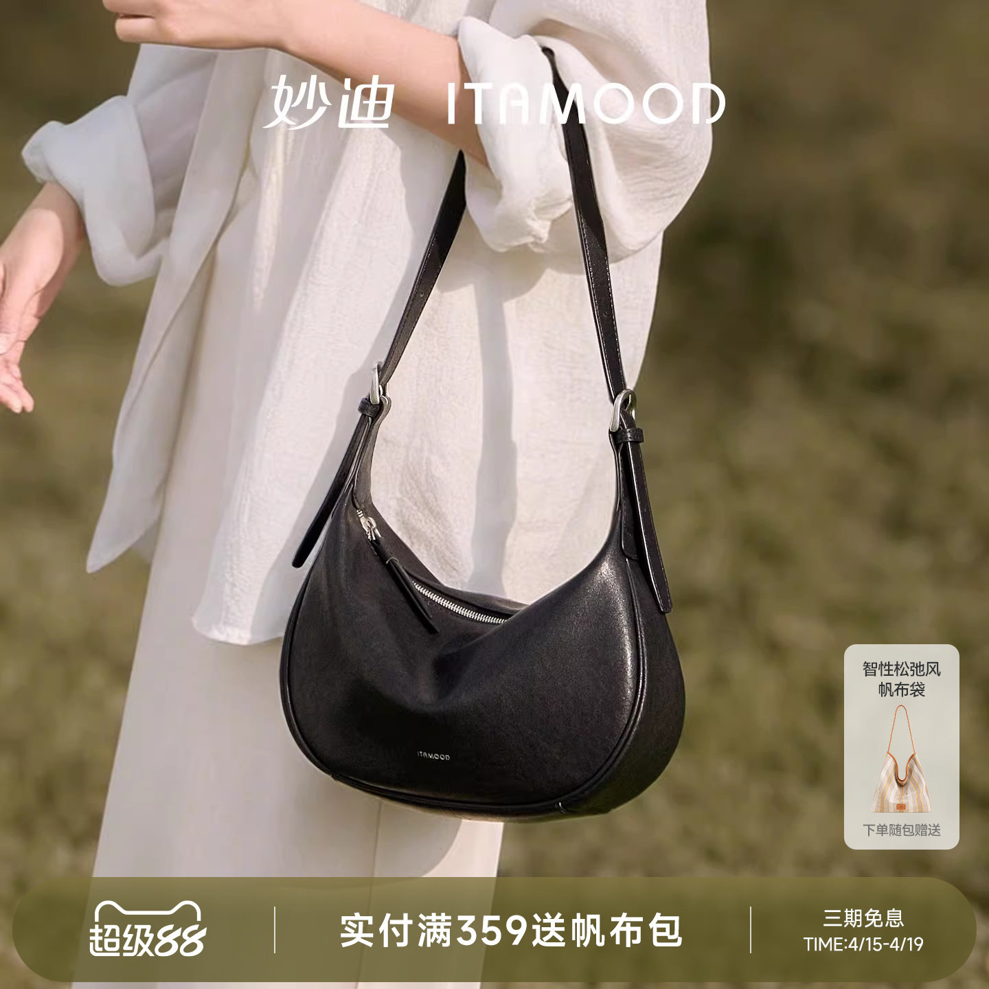 妙迪白色真皮包包hobo腋下包新款女士高级感通勤大容量单肩包斜挎