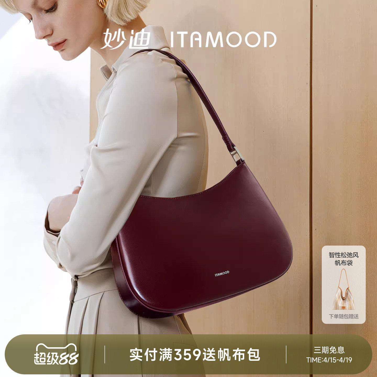 妙迪红色腋下包2026新款女士轻奢高级感牛皮月牙半月包通勤单肩包
