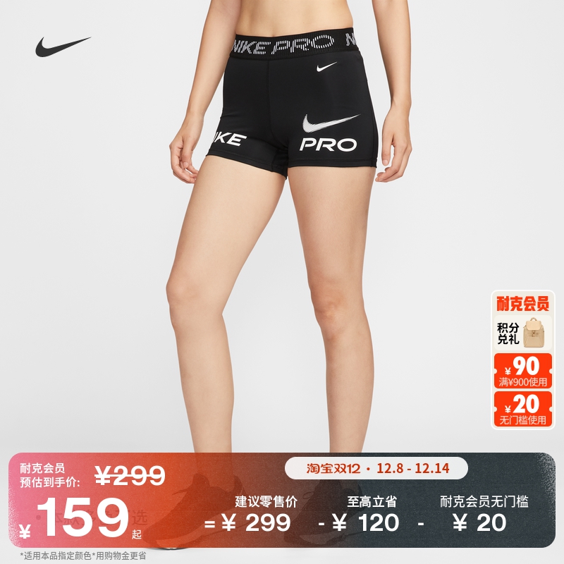 耐克女子训练骑行短裤速干中腰印花轻便运动裤NIKE PRO HV2465