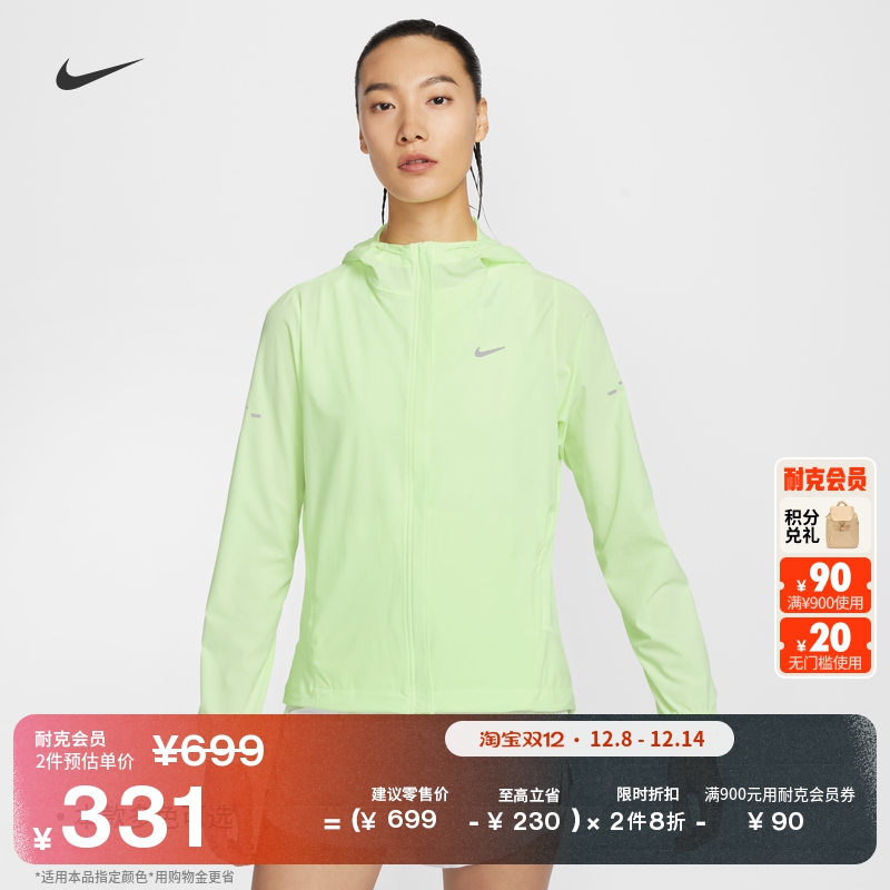 耐克女子轻薄跑步夹克防泼水可收纳梭织外套NIKE SWIFT HQ0651
