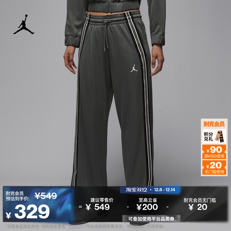 耐克乔丹女子复古加绒长裤冬季新款针织柔软卫裤JORDAN HV0318