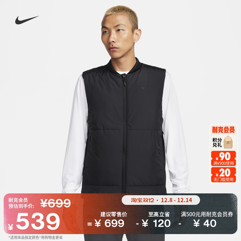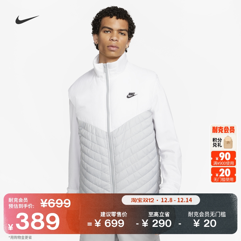 耐克男子防泼水马甲冬季保暖休闲叠搭棉服NIKE THERMA-FIT FB8202